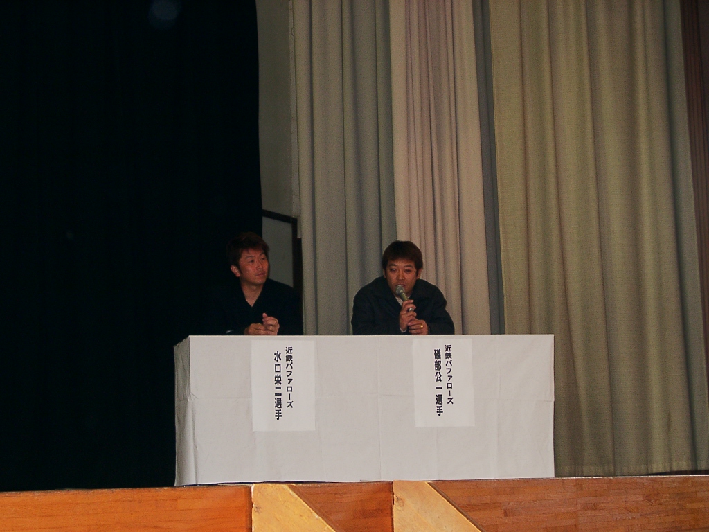 ・近鉄バッファローズ水口・磯部両選手来校 (2002/1/22)