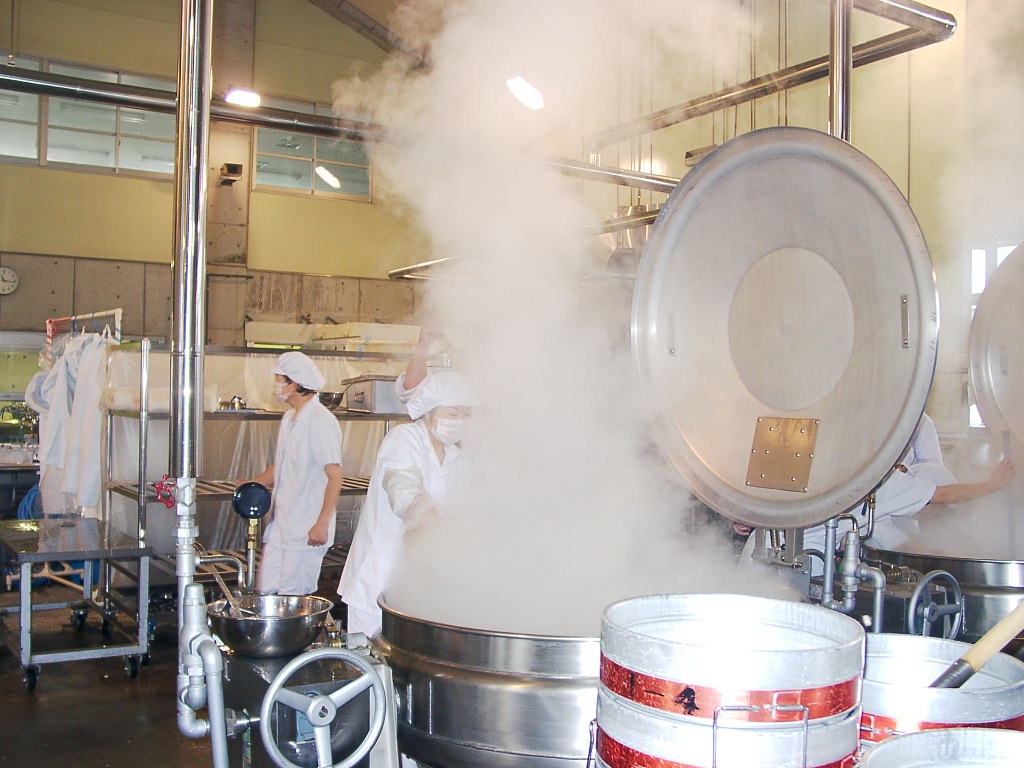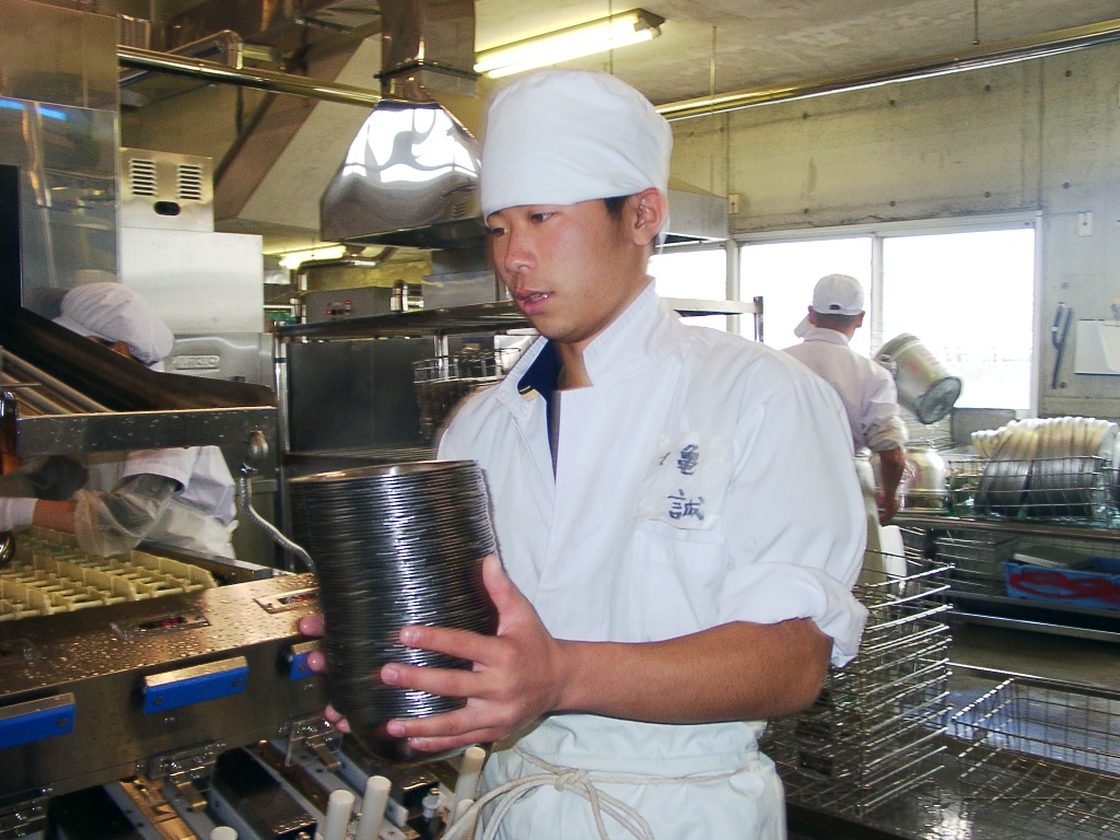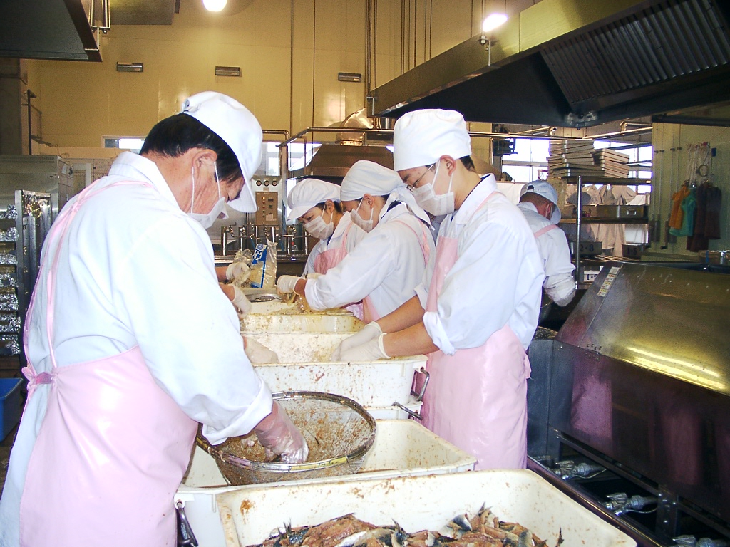 集団調理実習では、生徒自身の手で実社会同様の調理業務を実施します。