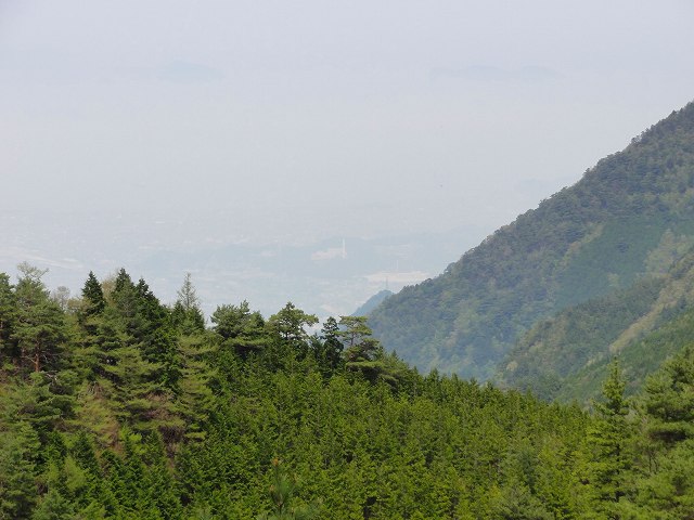 新居浜平野が、見えます。写真中央、ちょっとコブのような山。 東平の”一の森”です。