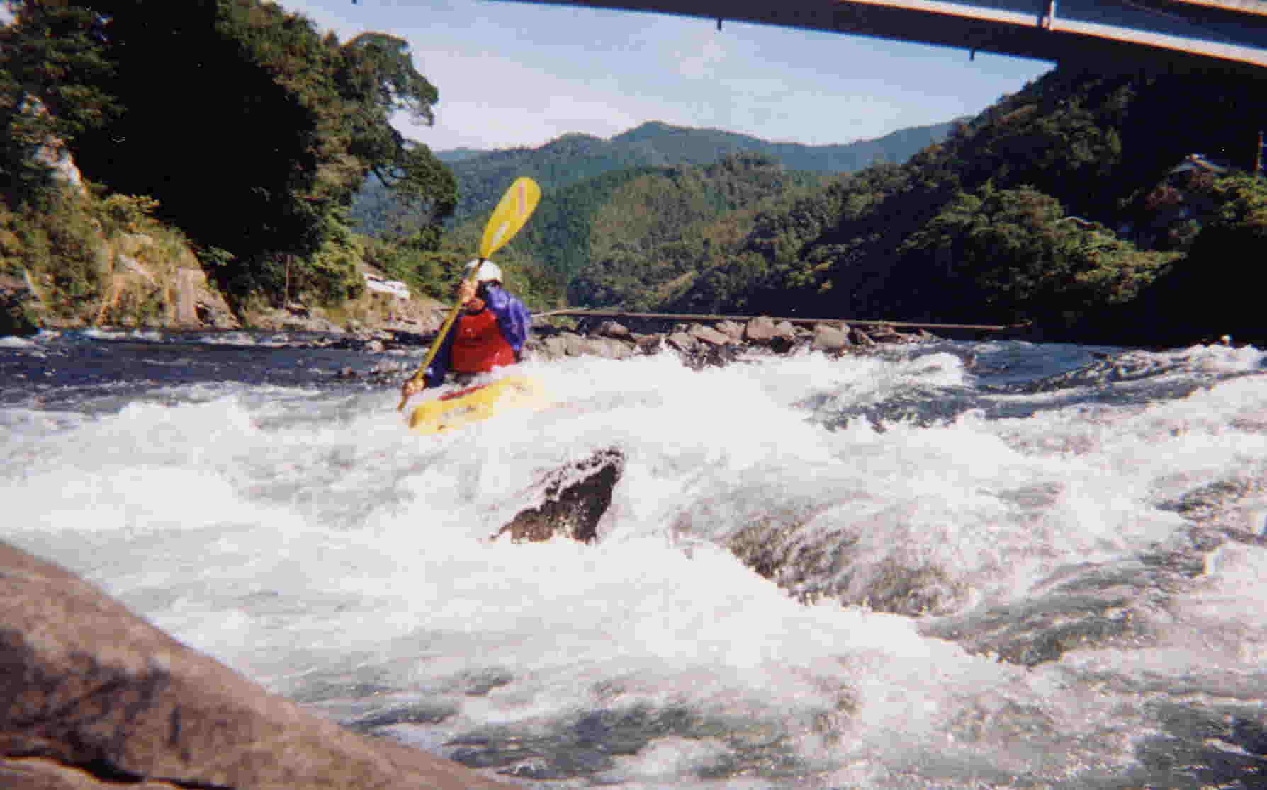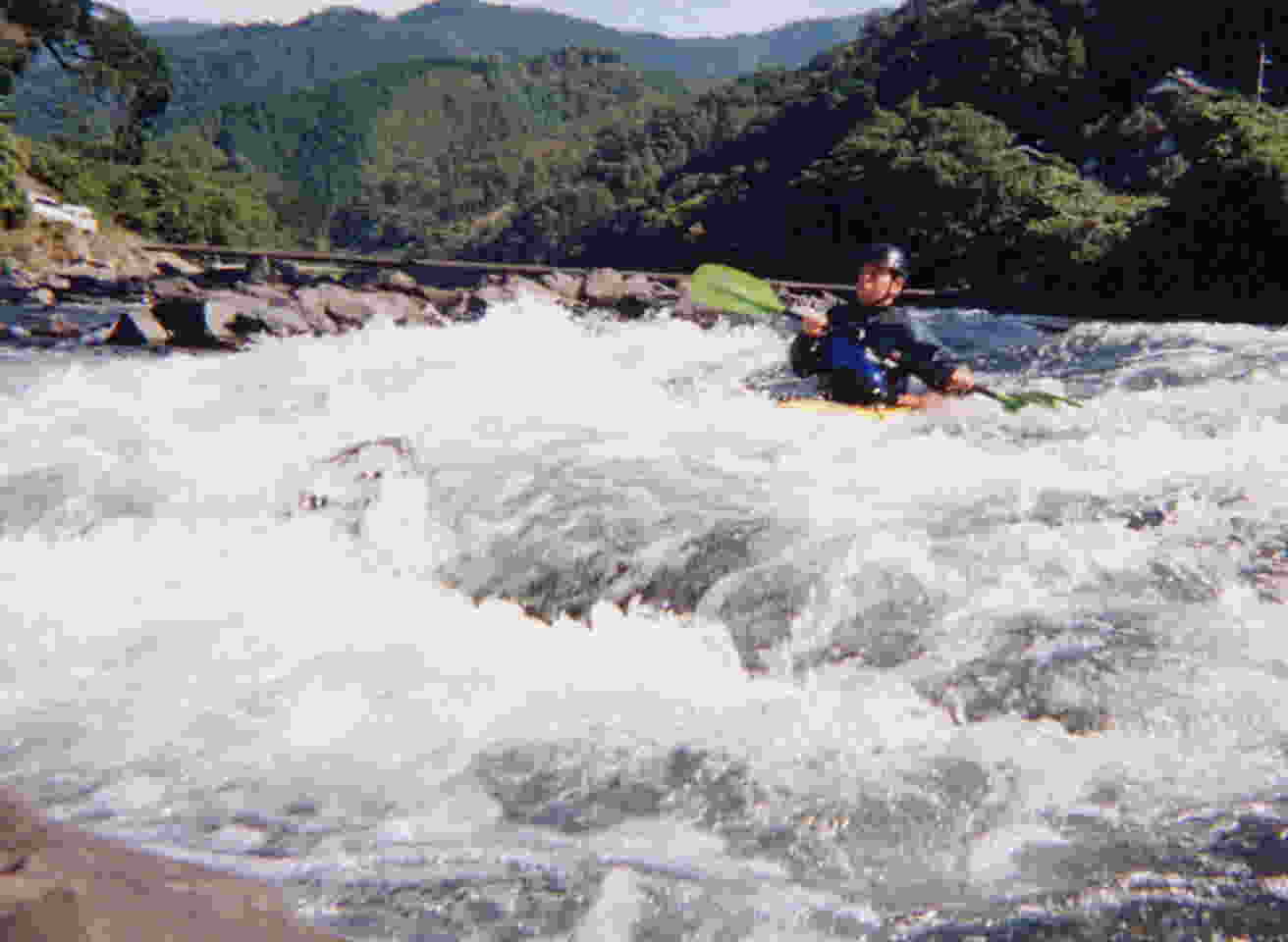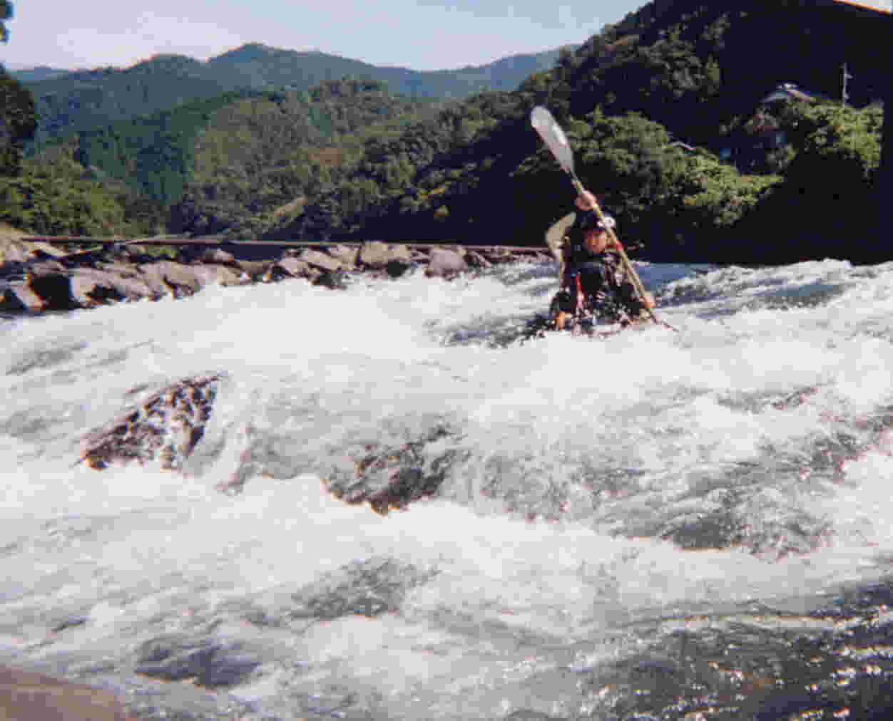 下は 瀬の 入り口から 撮った写真です。 カヤックから見ると 前方の 川は 真っ白です !!