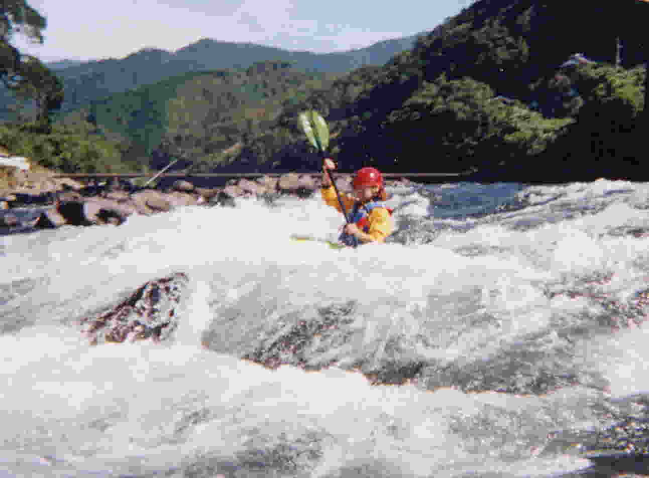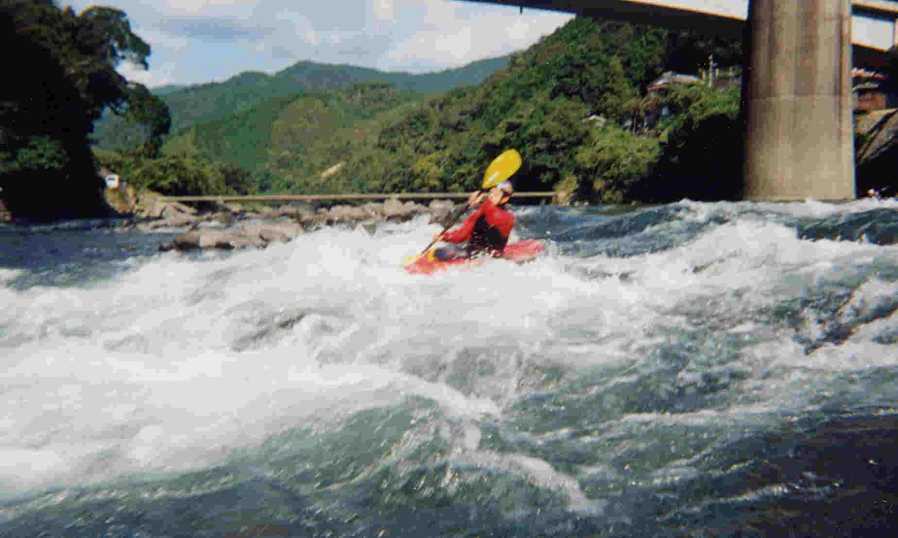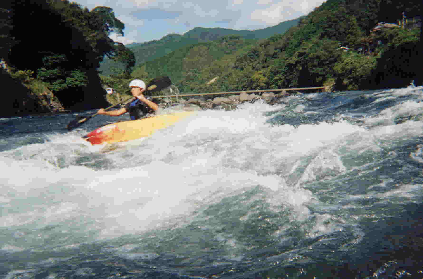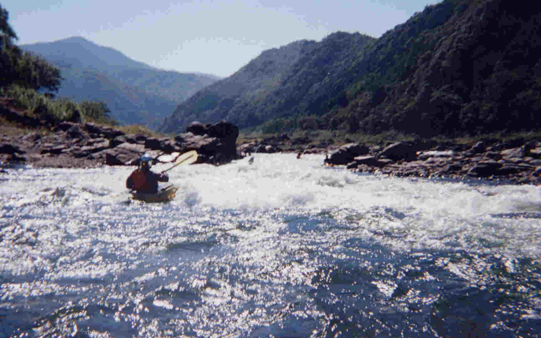 下は 瀬の 入り口から 撮った写真です。 カヤックから見ると 前方の 川は 真っ白です !!