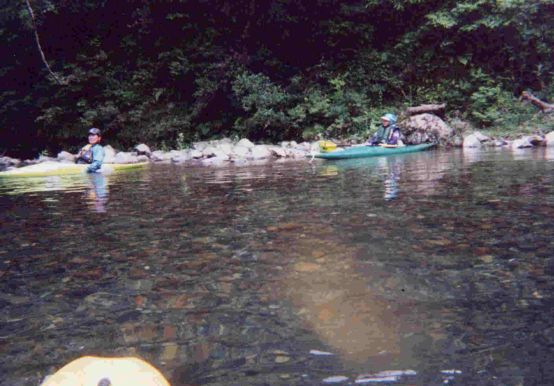 黒尊川の ミネラルウォーター・カヌーです。晴れていれば 艇の影が 川底に映り もっと浮遊感覚が 増すはず ・・・