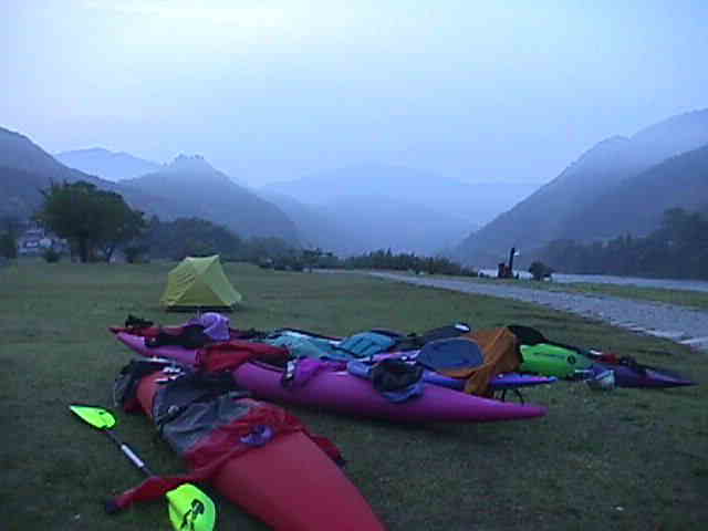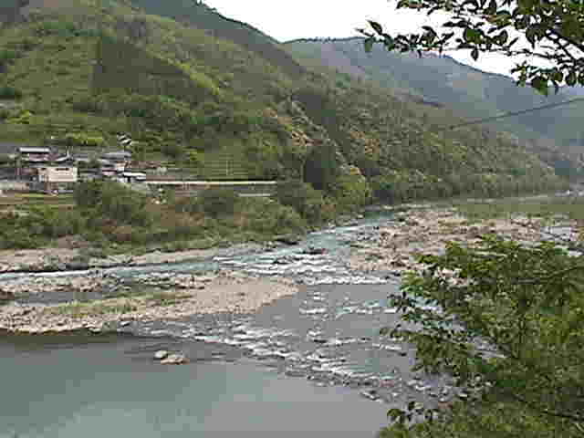 三島の中州が見える。中州の左のコースを下る。写真中央から右