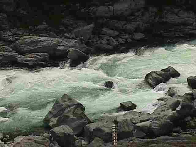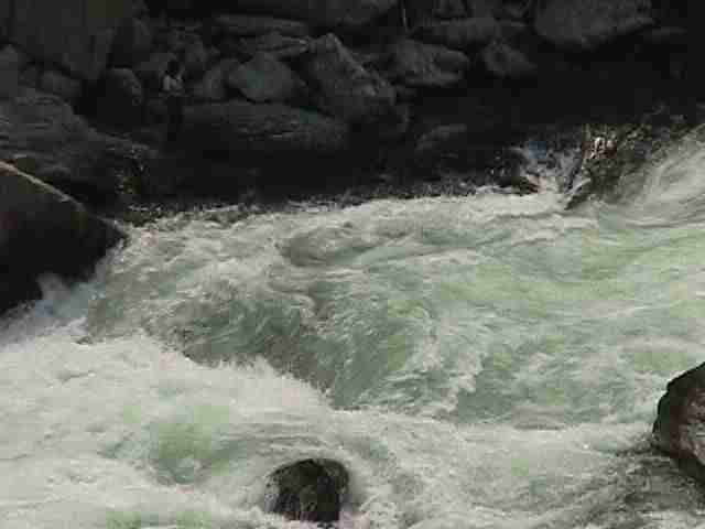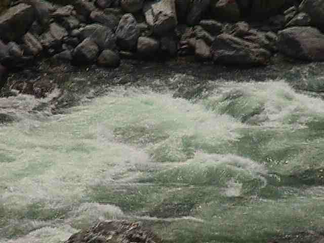 ”曲がり戸の瀬”の メインホール付近です。 右は 拡大です。 岩の上を水が 超えています。