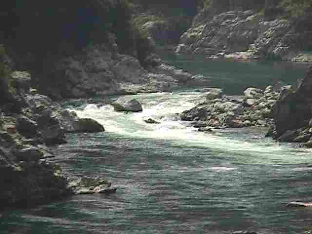 いつもの 夏場の 水量です。商業ラフトも にぎやかです。 ただ カヤックは 来週 8/30に 四国ロデオ大会が