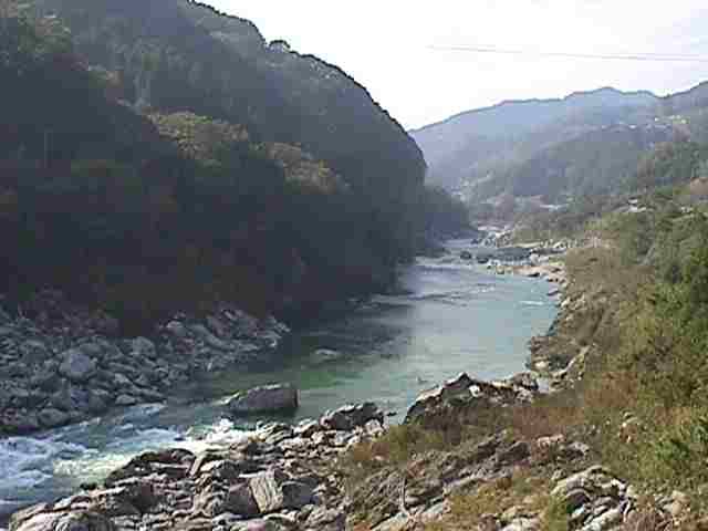 この 「岩原の瀬」を過ぎると 吉野川の流れは 南北方向に曲がって 谷は日が陰るのが早い。