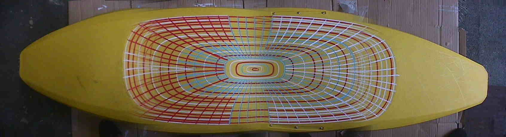 カヤックの 底に 模様が入っています (凹みだけで 無彩色)