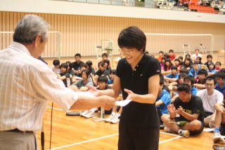 受賞者代表して岡本亮一選手のあいさつ |