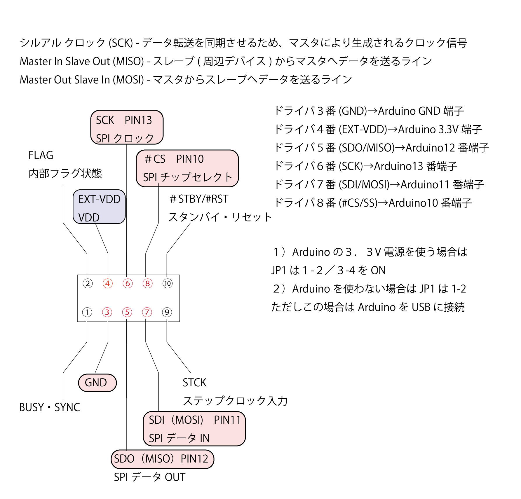 ドライバ8番(#CS/SS)→Arduino10番端子