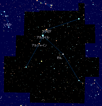 天の川をはさんで東側にわし座のアルタイルが輝いています
