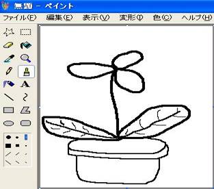 ツールボックスのペンキをクリックして花びらの上でクリックすると指定した色がつきます