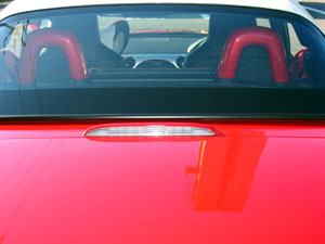 後側カバーは、このようになっているので、まず上側に 持ち上げる。 下側とロールバー固定部が外せたら、後側へ倒しなが ら抜き取る。 |