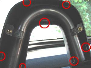 前側カバーを外した状態。 後側カバーをタッピングスクリューでロールバーに固定 前側はクリップのみで固定 タッピングスクリューを+ドライバーで外す。 |