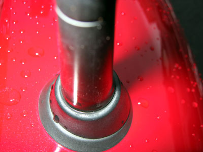 雨の影響かロッド取り付け部の内側に若干の水気がありました。