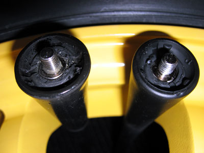 | ネジ部の比較。左:旧、右:新。緩み止め用の突起は潰れてしまってます。 |