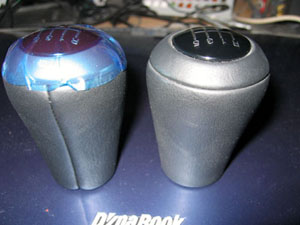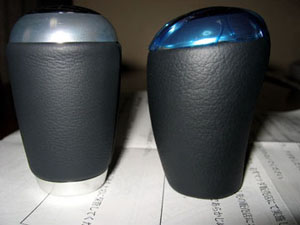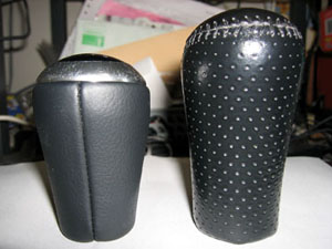 | なぜか手元にある純正新品ノブ(笑)と比較。 左が純正、右がOP皮巻き。 |