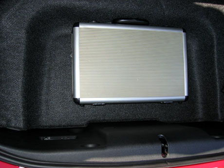 実際には、底よりも上面の方が少し広がっていたり、トランクのラッチ部分のトリムパーツの薄くなっている部分で余裕があったりする。