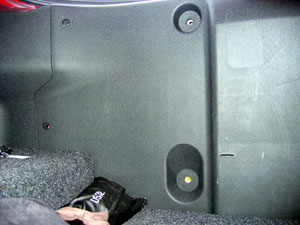 まずは、トランク後部の内装パーツを止めているファスナーを8個外します。