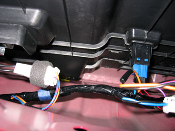 | 左のスポンジ巻かれた白いのと、右側の青いコネクタを外す。 |