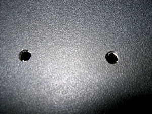 6mmに刃を交換して、中心からずれないように、穴を拡大した。