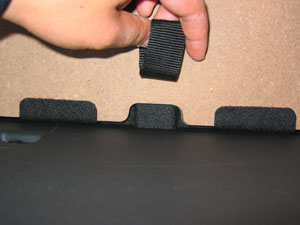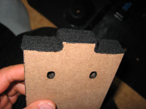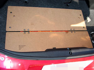 | MDFボード?2枚張り合わせて、塗装してます。 | 板を受ける部分はフェルト?で痛み&音対策か? | 内装部品と合わせてカット部分の微調整 |