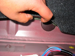 軽くボディーから内装部品を剥がして、トランク電磁オープナーON/OFF