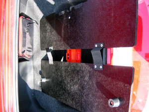 仕方が無いので、パンク修理キットとトリムの間に挟み込んでとりあえず固定した。