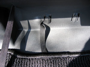 | なぜこんな所にクリップ状の物があるのか疑問でした | 左側は、トランクマットのズレ防止ストラップ固定用 |