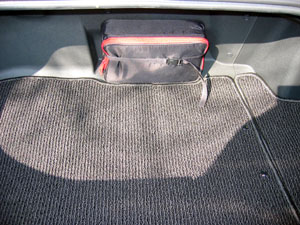 パンク修理キットは、ちゃんと固定用のバンドが装備されているので問題ないが、車載工具は袋に入った状態でトランクに放置されている。