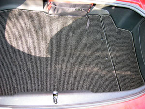 | これでトランクマットを置きます。 半分開けた状態。 普段は、雑巾とガラスクリーナーしか取り出さないので十分でしょう。 |