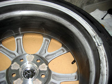 リム部を見るとサーフェイサーがしっかりと乗ってます。 下地を作って、きっちり塗装してたんですね。 |