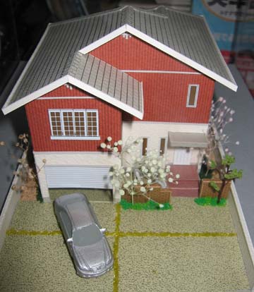 家より、家の前に置かれてるミニカーが気になったけど、車種がよく判らん(爆)。マーク2かセフィーロのようにも見えるがフロントグリルが違うし。。