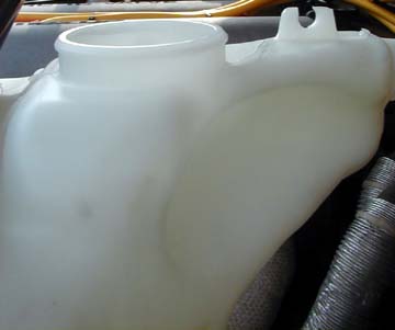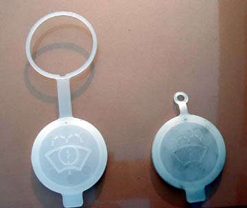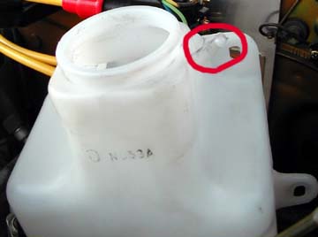 ウォッシャータンクの注入口の比較。左がABS車用、右がABS無し車用