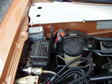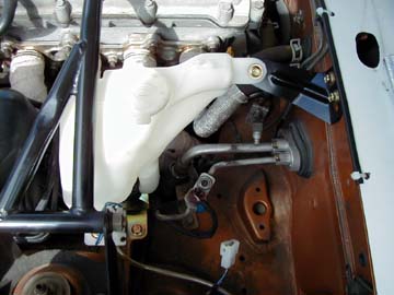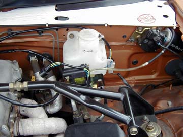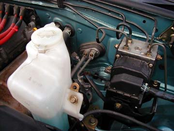 ABS装着車は、ABSユニットがウォッシャータンクの位置にあり、タンクはタワーバーの方(前方)に張り出してるのです。