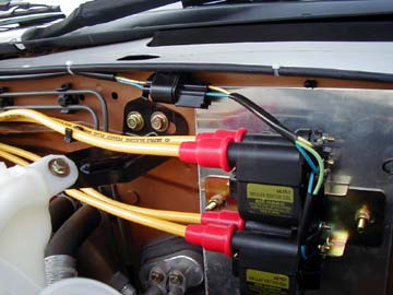 コントロールユニットは、ブレーキマスターバックの横のバルクヘッド、コイルユニットはウォッシャータンクの位置に