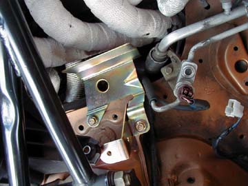 NB2 1.6L ABS付き車両のABSユニットとタンク 遮熱板兼、タンク取り付け用のベースのパーツの形状も異なる。 |