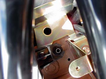 取り付け前の状態。タンクは、上側2本のボルトでバルクヘッドに固定され、下側は穴にタンク底部の突き出し部を差し込んであるだけ