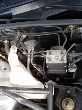 | NB1 1.8L ABS付き車両のABSユニットとタンク NB2に比べてカプラーの位置、パイプの取廻し が異なってます。 |
