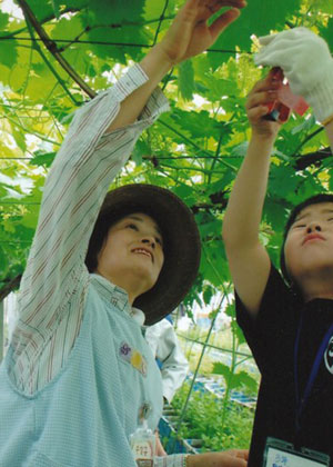 千賀子(52歳) 体験をしながらのおしゃべりが 楽しい。農園のことから、家族 のこと、自分の趣味のことまで いつも話ははずみます。
