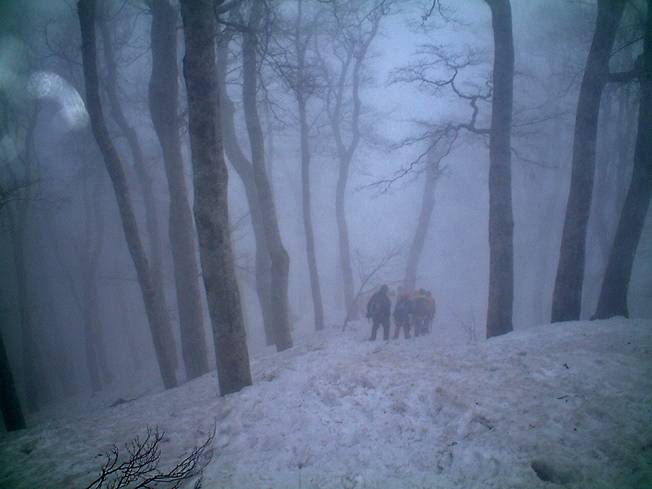 どっちを向いても視界5、6mのガスの中、ポイントも雪の下これじゃぁ〜ね