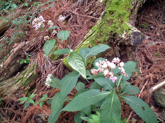 登山道に はシモツケソウやシコクフウロが咲き誇っています