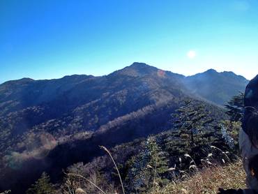 石 堂山頂直下からの矢筈山、霧氷はすっかり無くなっている。