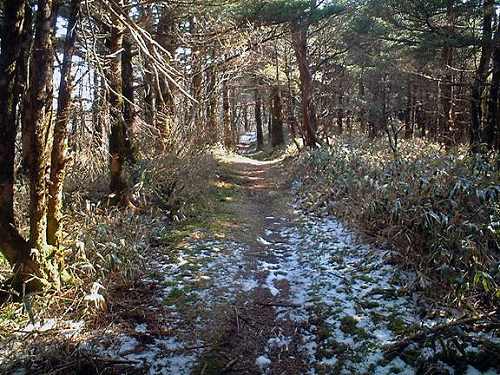 12時10分 大岩を右に巻いて笹尾根に出ました。 頂上まで未だ少しあるね〜、