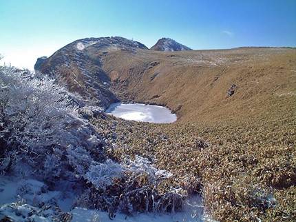 霧氷の中綺麗ですがとても寒いです