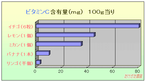 大人の1日の必要摂取量は1日50mgとされています。イチゴでいうと約5粒。ビタミンCが多いといわれる「レモン」で、50mgを摂取しようとすると2.5個食べなくてはなりません。イチゴがいかに効率良く摂取できるかがわかっていただけるとおもいます。また、イチゴは「低カロリー」の果実でもあります。イチゴ100g当りのカロリーは、約35kcal!!どの果物と比べても低カロリーなのです。