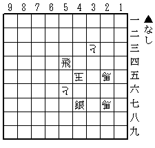 6七飛 5七飛成 7三角 6四金 同飛/2八飛 4六龍 4七金 迄 【投稿時・作者コメント】 こんなものしかできていなくてすみません。 【評価】 自力正解者・・・7名 A・・・3、B・・・3、C・・・0 平均点・・・2.50(3位) お気に入り投票 : 1 【解説(のようなもの)】 51を抑える方法を考えると初手15角に目が行くが、2六合も3六玉も全然手が続かない。玉のバックの香部隊が強力すぎる。そして少し上級者になると目に付くのが87飛〜91角の攻め方です。玉方飛車が何か駒を取って82復活合のパターンは攻め駒がたりませんので、たとえばこんな筋:87飛 57飛成 91角 82金 同飛/28飛 46龍 47金 迄 お〜詰んだヤンと思ったら51が抑えられていませんでしたので同玉/51玉でダメでした。 しかしここにヒントが・・・最後91角の位置が73であれば詰むことに気が付けば”わかった!”でしょう。初手と3手目の複合限定打が見た目にすごく中途半端な位置に感じる為、意表を突かれた感じですね。 それと2手目の飛成もポイントを稼ぎました。最近は常識の不成より成る方が好評価が得られることがままありますね。おもしろい傾向です。 王配置で駒数を少なく出来たのと狙いを端的に実現している点で解答者には好印象でした。 (注)作者の登場回数が間違っていました。8回が正しい回数でした。 * 橋本孝治 「てっきり87飛〜91角だと思ったので少し裏をかかれました。さすがに同じネタばかりはやらないか。B」 私も同じでした 若林 「限定打2連続。B」 隅の老人B 「2度の移動合。アンチキルケの妙手が、いっぱい。A」 移動合の方に目が行くのはマニアっぽいです 伊達 悠 「初級の部に反して成りましたか。最初は不成で解いて苦戦。B」 うんうん!それが普通です 小峰耕希 「このルールでは当然とはいえ、これだけ綺麗に限定してくれると解後感が良い。A。」 「解後感」皆さん単語登録してますか?私はしています 北村太路 「第1印象はどうやっても詰みそう。実際さわってみると、どうやっても逆王手がかかる。自玉がすごいジャマ!そして、手順は初手限定打。この意味付けはいままでありましたっけ?2手目の成限定も決まって、アンチキルケらしい面白い手順でした。(FM使用)A」 ポイントは初手というより3手目の角の位置なんですね、それにより初手の位置が決まるということですね もず 「氾濫の自作の余詰筋に着想を得ました。15角の紛れ筋を残すようにしたのですが、その代償として逆王手逃れを強力に使うことになってしまいました。自玉が詰め上がりに役立っていないのは大目に見ていただければと思います。」 言われて気が付きました 短3 たくぼん 作 (登場8回) アンチキルケばか詰 9手