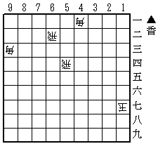 5八金/4九金 5七玉 5九香 5八金 同金/6九金 6七玉 7七金 迄 【評価】 自力正解者・・・10名 A・・・3、B・・・3、C・・・2 平均点・・・2.13(6位) お気に入り投票 : 0 【解説(のようなもの)】 きれいな横一文字の初形です。今までアンチキルケで初形曲詰は記憶にないので(最近ボケが始まっているので当てにならない記憶ですが)第1号局かもしれません。 そして手順も難しくはないものの金の左右への復活を織り込み充分鑑賞に堪えられるものに仕上がっています。これ以上手を加えることの必要がない完成品と言えるでしょう。 特に使用駒に呼応した金合が美しいです。 今回唯一の全員自力正解の作品で、今までの北村ワールドとは異なる一作です。 * 橋本孝治 「初形「一」から、金の左右への復活。完成度の高い小品だと思います。A」 オリンピックのフィギアスケートに習って評価すると「技術点:満点」って感じかな 若林 「5筋からの両方復活。初形も含めて1番としては充分でしょう。B」 隅の老人B 「持駒が無いので楽と思ったら、合駒とは。金の動きが楽しい。B」 伊達 悠 「金の反復横とび。解後感が良いです。A」 吉川慎耶 「手順ともにいい。B」 小五郎 「5筋の駒取り、あっちに戻ったりこっちに戻ったり。」 小峰耕希 「この手順としては初形・枚数においての決定版か?とはいうものの、いざ採点するとなると…。C」 評価は難しい作品と言えます。皆さん見る視点が違うのでバラバラでした 北村太路 「攻方金の両側復活で、合いも限定になっていますが、合駒金なので当たり前か。3八に駒がなければなぁ。手順も初手絶対手から、簡単すぎるし。(絶連というやつか。)面白みも全くないし。Cでいいか。」 →よくありません(笑) もず 「氾濫の逆バージョンですね。これだけ簡素な配置(しかも「一」)で実現できるとは。作意は見えやすいですが最短手数でやりたいことができているところに好感が持てます。A」 ねっ北村さん。こんなに褒められてるんだから 短2 もず 作 (登場8回) アンチキルケばか詰 7手