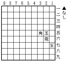 39飛 29飛 同馬/47飛 迄 3手 【解説(のようなもの)】 ここまでで残るのは飛と香となりましたが、本作は飛です。4枚では無理だったのでしょうね。ポイントは王手駒(飛)で飛を取らないこと。ちょっとしたコロンブスの卵ですが、このへんが一味違う所です。(あげまんじゅう美味しかったです←賄賂を受け取った?) * 橋本孝治 「さしもの神無太郎さんも4枚では出来なかった?」 有名税がありますら大変です。ちなみに28歩がないと46馬以下ぼろぼろに詰みます。 伊達 悠 「太郎さんは今回は一つしかできなかったようですが、それでも最初に王手する駒と合駒を取る駒を別にする所に太郎さんの作図センスのよさがでています。あ〜すごいナァ・・・・・・」 実は3作投稿だったんです。本命は本作とのこと 隅の老人B 「これは簡単。だって、初手はこれしかありません。」 若林 「ああ、王手駒と合駒を取る駒を分ければ良かったんですよね。」 真T 「PWC1と対の感じがいい感じです(作者は違いますが…)。」 小峰耕希 「初手の王手駒と別の駒が取りを行うのが新手筋でしょうか。」 残るは香合・・・可能でしょうか? PWC4 真T 作 (初登場) PWCばか詰 5手