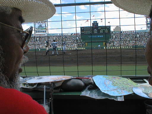 バックネット裏、前から2番目の席で観戦。 テレビに大うつしの場所でした。