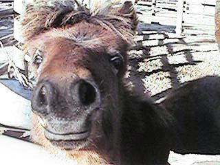 野間馬が喜んだときは、この写真のように頭を前に出して、やさしい顔ですりよ ってきます。